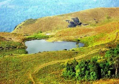Itself a major tourist attraction, the lake near the top of Chembra Peak in India is said to have never dried up. Apparently over 150 people pass the lake every day during the 3km journey to the top. See the area on Google Maps here.